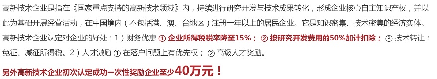 4、科研用房500平方米以上,科研資產(chǎn)總額500萬元以上(軟件類企業(yè)300萬元以上)。