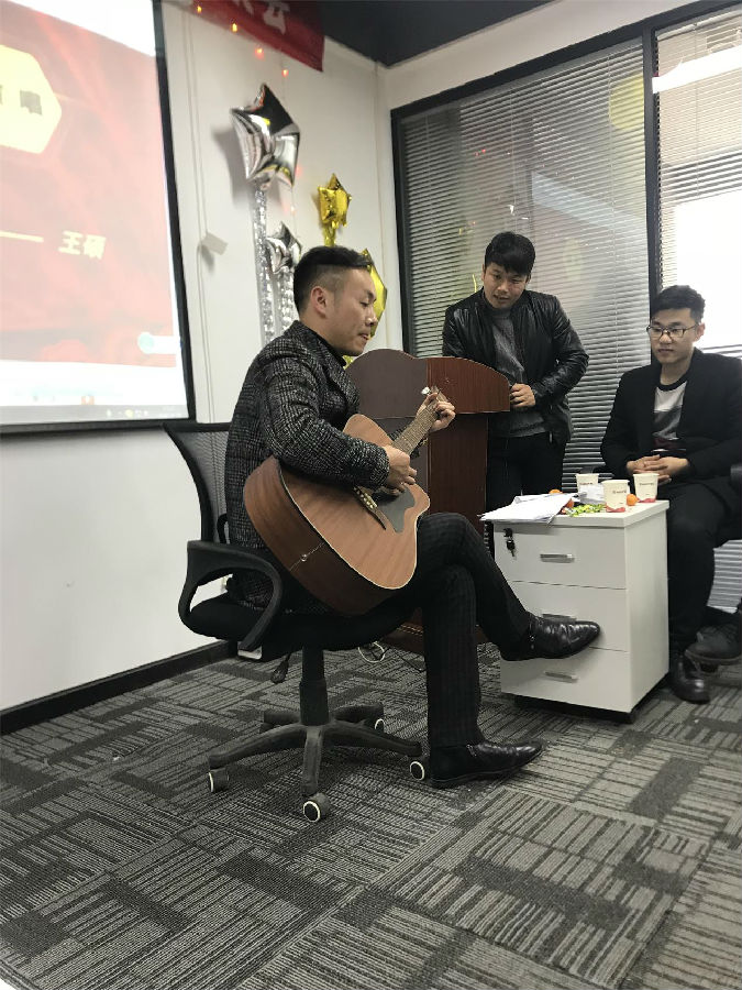 下午在熱烈的氣氛中,我們?nèi)w員工展開了豐富多彩的文藝演出,文藝演出中穿插舉行了“聽曲識(shí)歌”和“驛站傳書”的游戲。全體員工積極參與,整個(gè)氣氛熱烈歡騰。文藝匯演中,看得出大家最喜歡的節(jié)目是歌唱表演,參與的同事有張杰,左超,王宗汝,等等,極大限度的體現(xiàn)了我公司員工多才多藝的一面。節(jié)目還有人事部小祝表演的“橡皮筋”魔術(shù)精彩萬(wàn)分。不同風(fēng)格,體現(xiàn)了我們不同的風(fēng)采,但有一點(diǎn)是共同的:為了公司美好的明天,我們?nèi)σ愿?,努力拼搏?