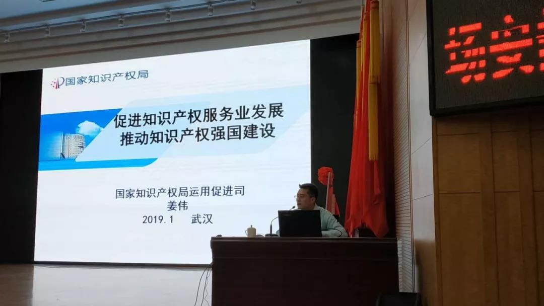 在成立大會結(jié)束之后,舉行專題培訓(xùn)會議。姜偉處長受邀做題為《促進(jìn)知識產(chǎn)權(quán)服務(wù)業(yè)發(fā)展,推動知識產(chǎn)權(quán)強(qiáng)國建設(shè)》的培訓(xùn)講座。培訓(xùn)會由協(xié)會秘書長、武漢科技大學(xué)知識產(chǎn)權(quán)研究所副所長蔡祖國教授主持。